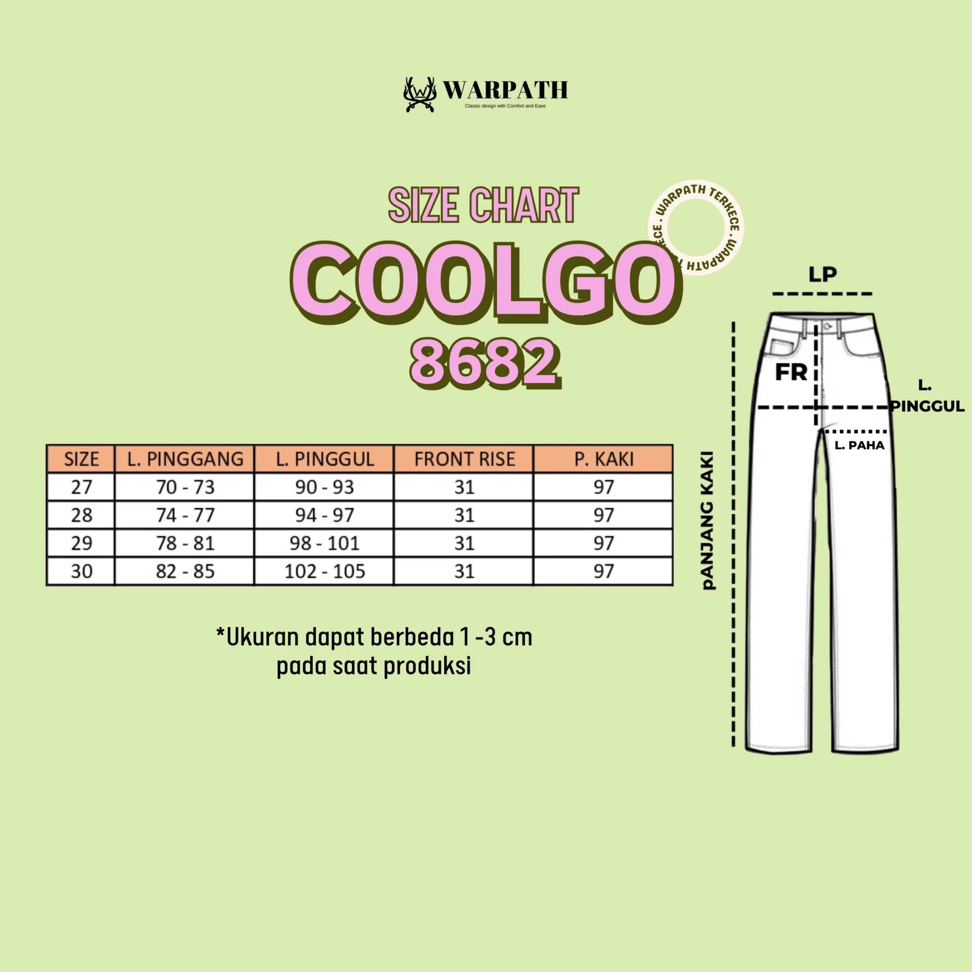 Size chart lengkap tersedia di slide foto terakhir.