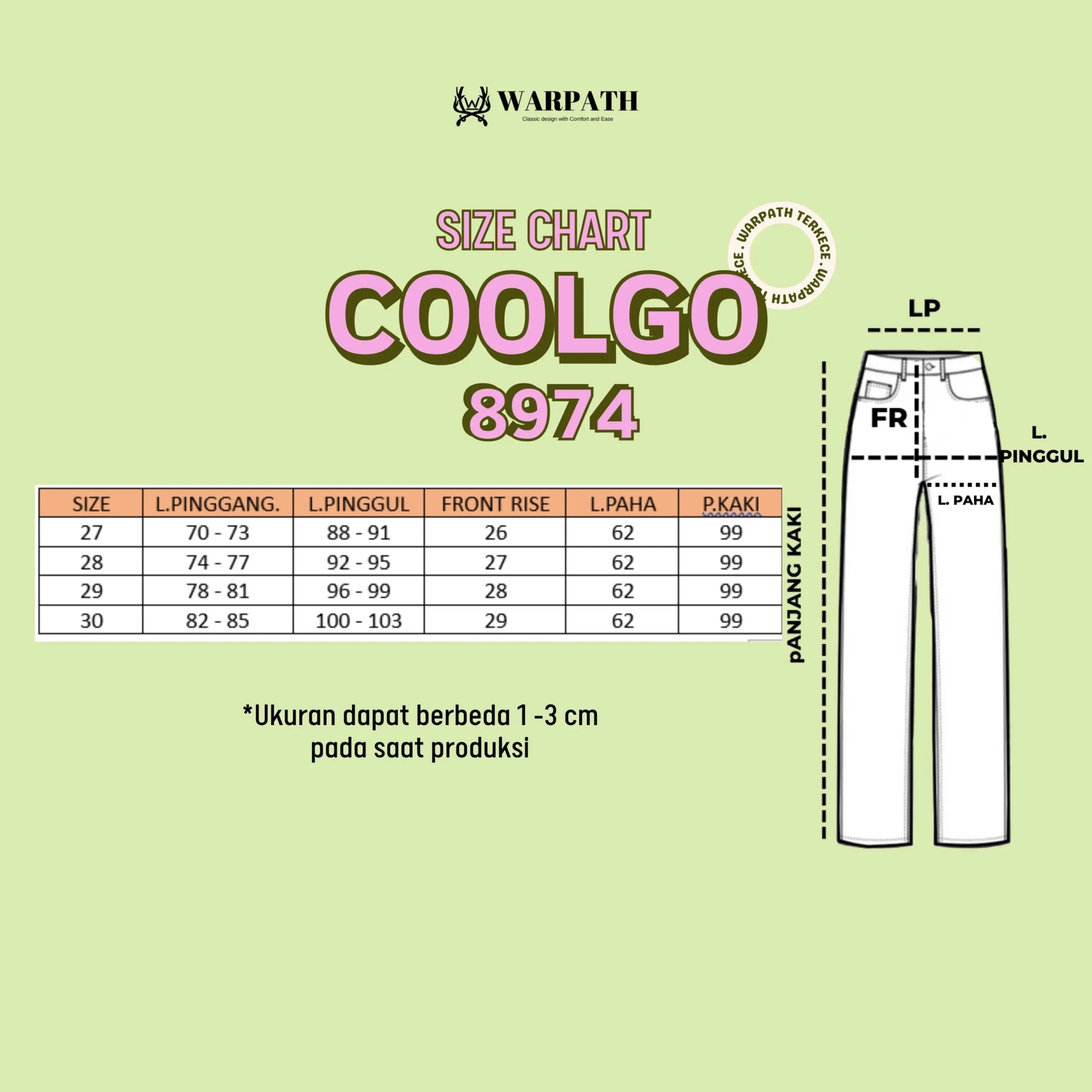 Size chart lengkap tersedia di slide foto terakhir.