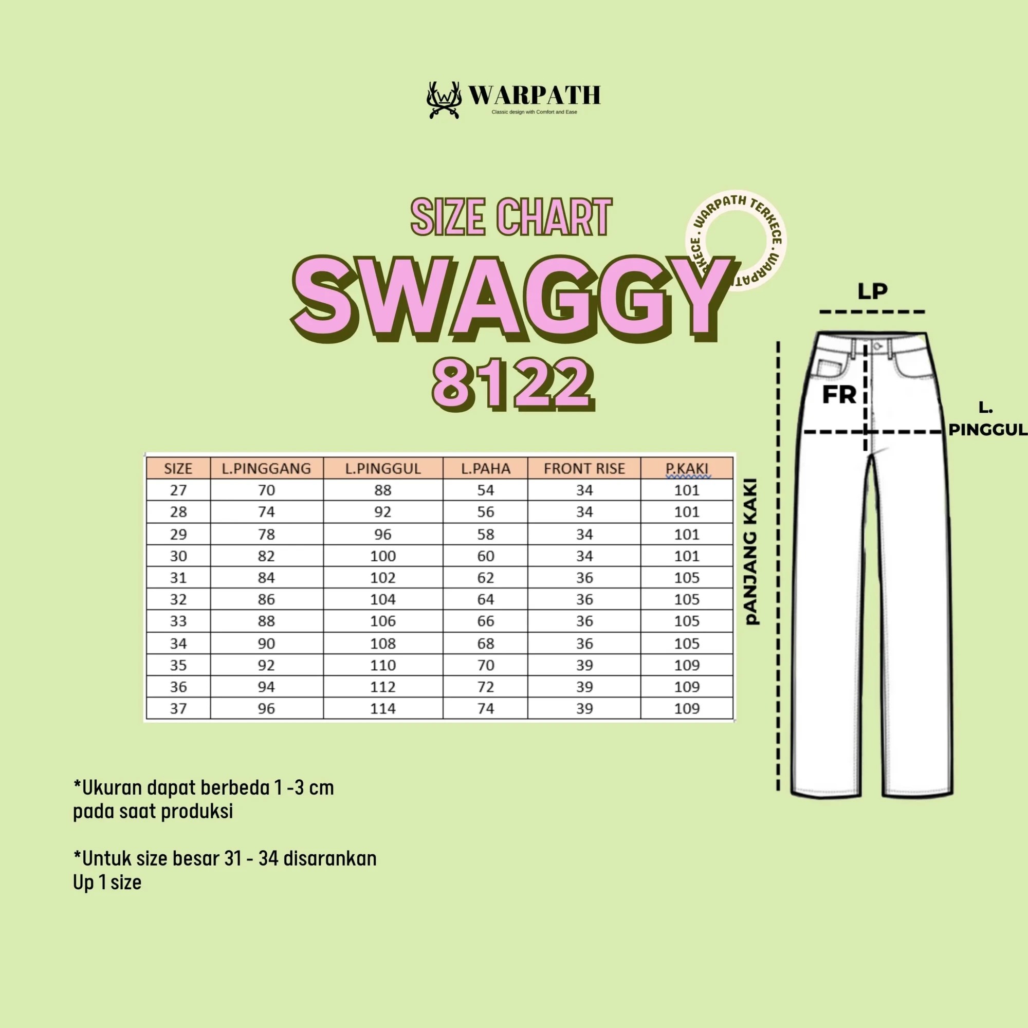 Size chart lengkap tersedia di slide foto terakhir.