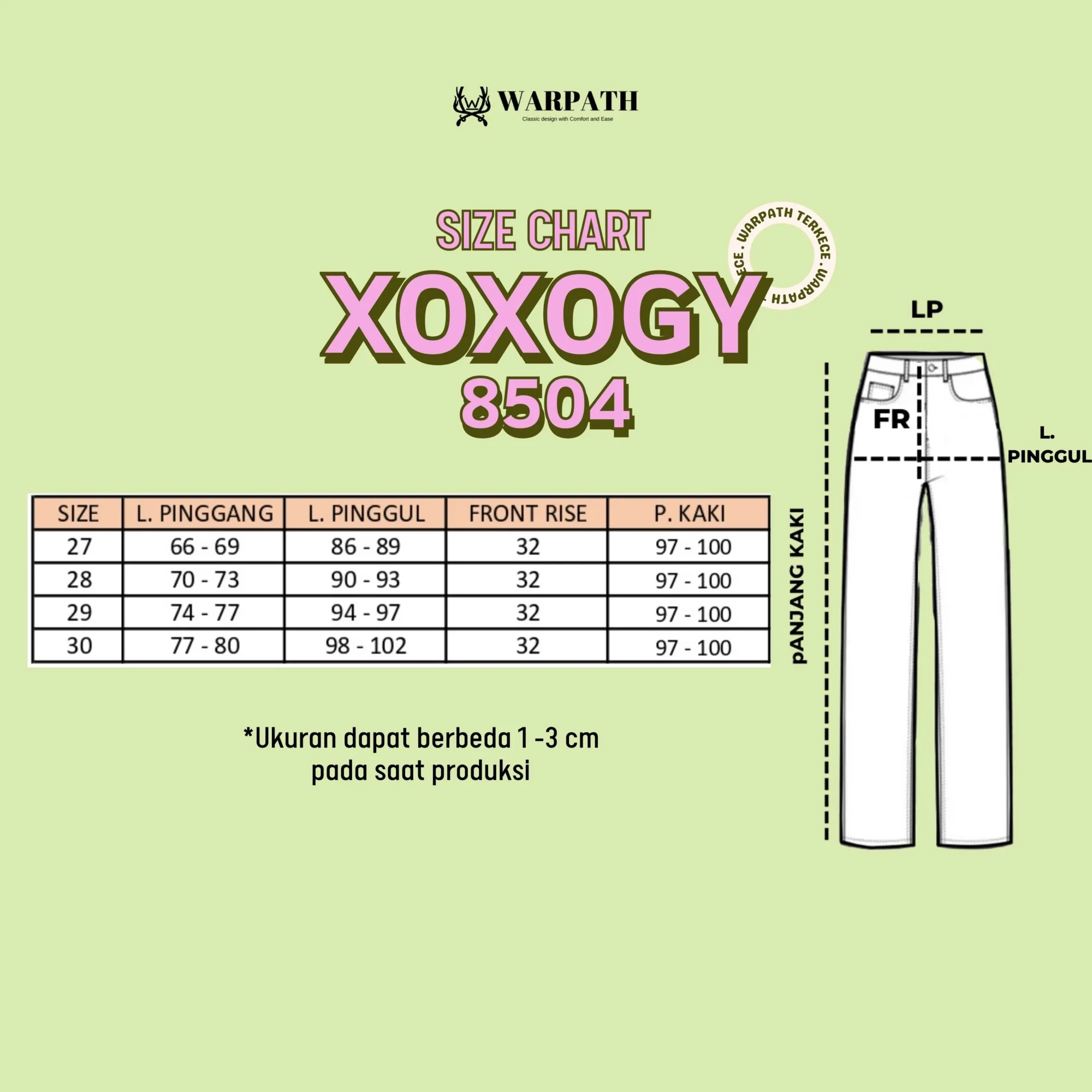 Size chart lengkap tersedia di slide foto terakhir.